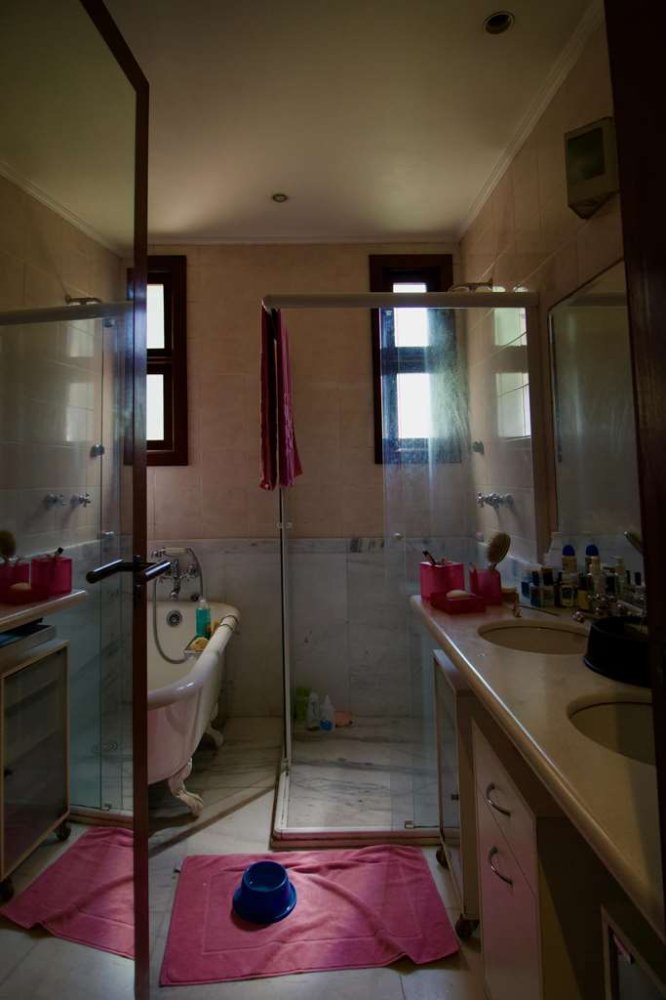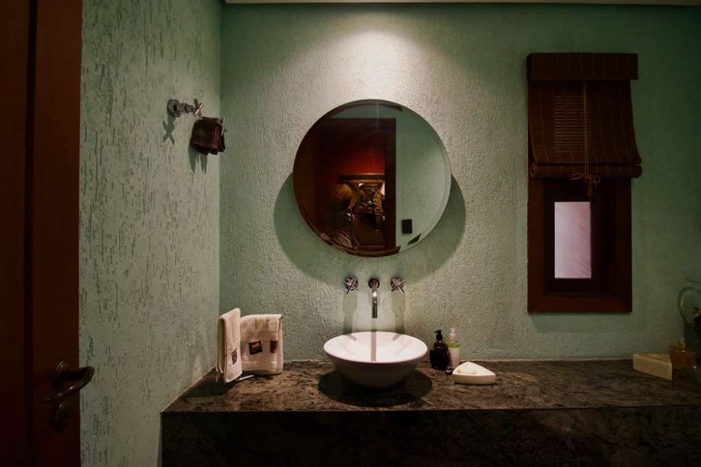 - Banheiros com pisos e tampos em mármore, espelhos e box de vidro, sendo a master com 2 cubas e hidro.