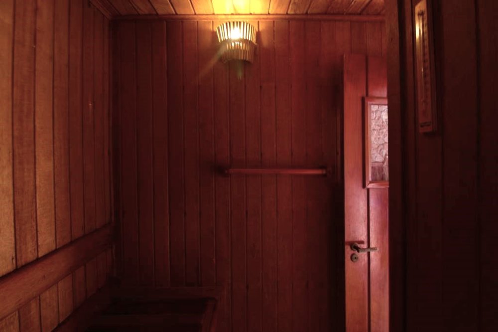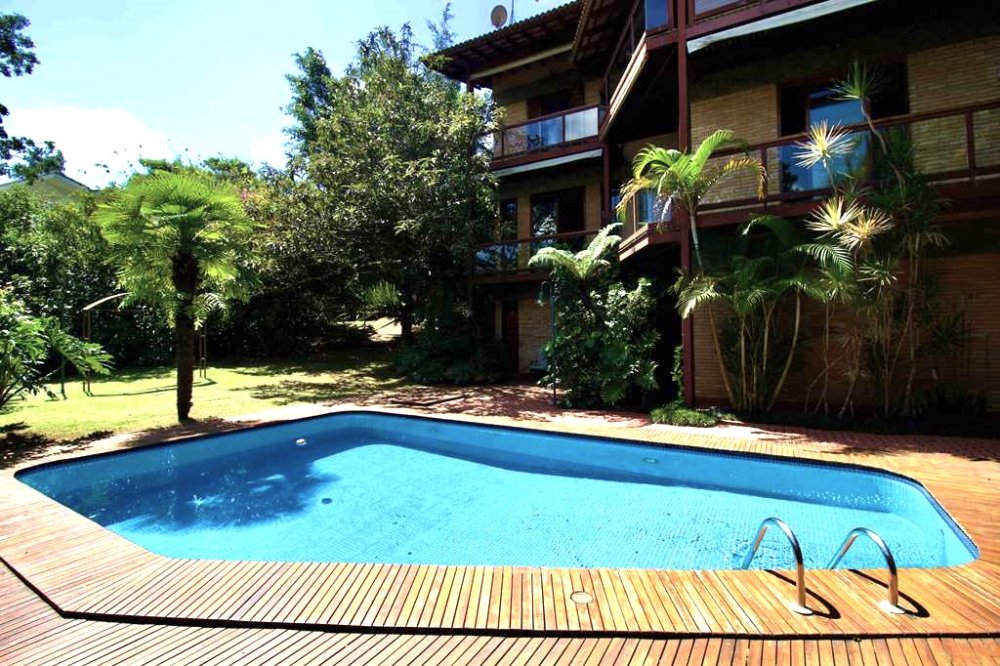 - Piscina de alvenaria revestida com pastilhas de cerâmica, iluminada, deck em Ipê, solarium, ducha e casa de máquinas.