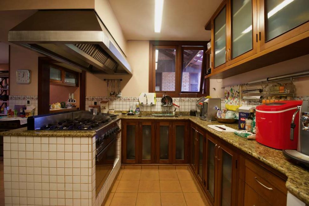 - Copa cozinha planejada repleta de armários e gabinetes, bancadas em granito, 2 cubas inox e coifa inox.
