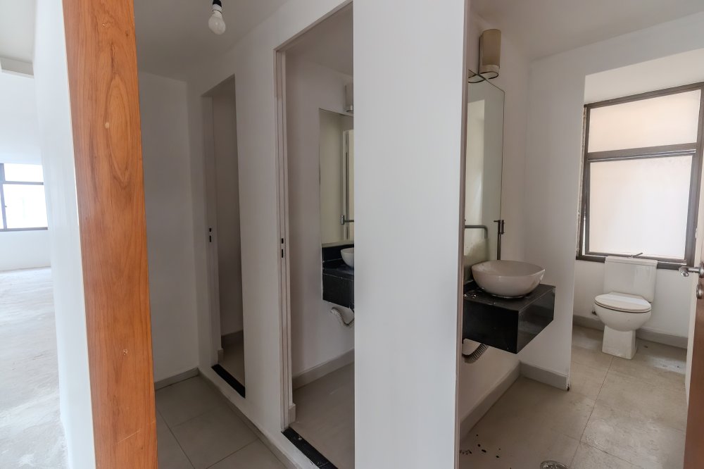 Além disso, o conjunto já conta com três banheiros montados e uma copa, proporcionando conforto imediato para sua equipe e eliminando etapas importantes no processo de adaptação do imóvel. A entrada do conjunto é ampla e aproveita parte do hall de elevadores, o que reforça a sensação de exclusividade e proporciona uma recepção diferenciada para seus clientes e colaboradores - afinal, o conjunto ocupa meio andar, garantindo discrição e presença marcante.