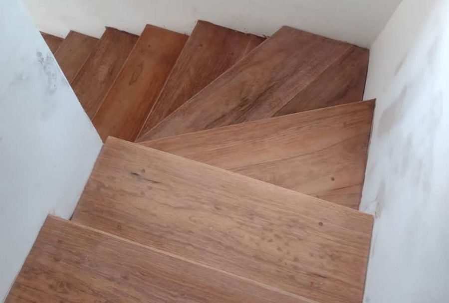 - Escada em madeira envernizada com espaço para armário/despensa