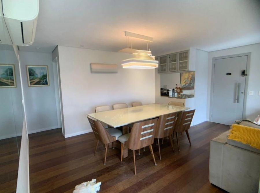 Com 107m² de área total e privativa, este imóvel semimobiliado no 3º andar oferece um espaço generoso e bem distribuído para você e sua família. São 3 dormitórios, sendo 1 suíte, ideais para o seu descanso e privacidade. Além disso, conta com 2 banheiros, 1 lavabo e 3 salas, proporcionando ambientes amplos e versáteis para receber amigos, relaxar e desfrutar de momentos inesquecíveis.