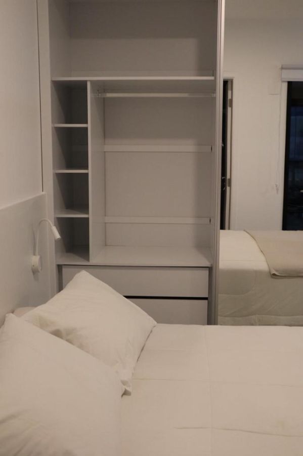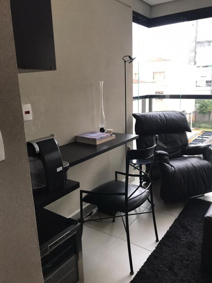 Com um dormitório bem distribuído, um banheiro moderno e uma vaga de garagem, este apartamento foi projetado para otimizar cada metro quadrado. A mobília escolhida a dedo garante um ambiente acolhedor e pronto para morar, ideal para quem busca praticidade sem abrir mão do bom gosto.