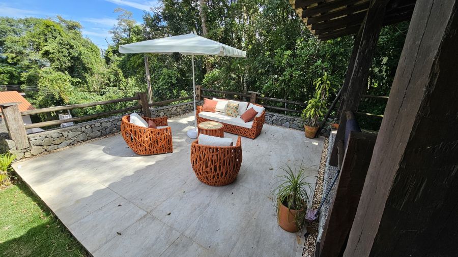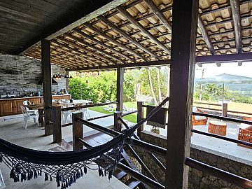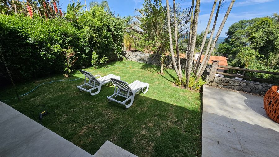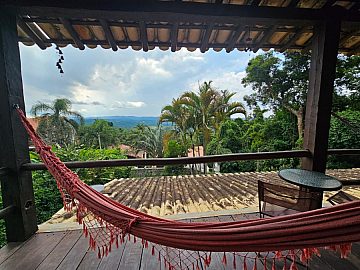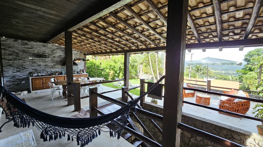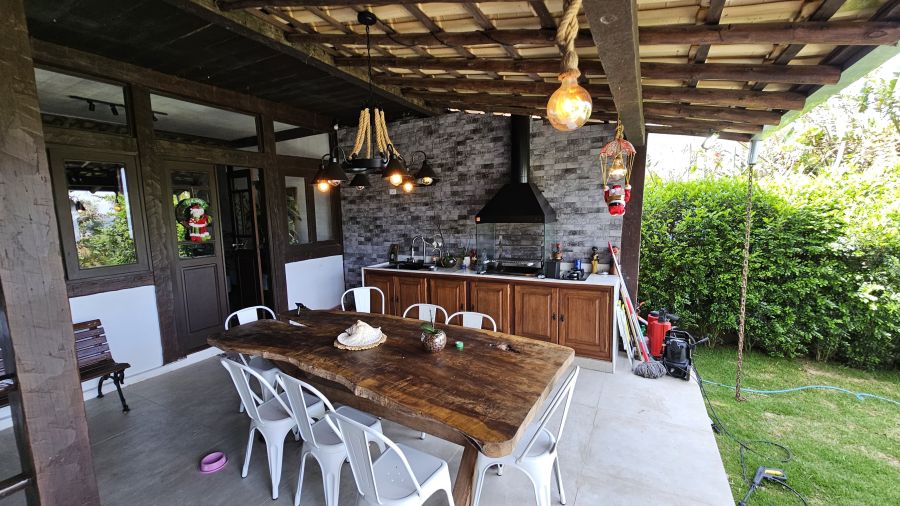A varanda é um dos grandes destaques desta propriedade. Dela, é possível contemplar uma vista panorâmica permanente, transformando o pôr do sol em um espetáculo particular diário. O jardim privativo e o espaço gourmet com churrasqueira completam o cenário perfeito para momentos de lazer ao ar livre, permitindo que a casa seja, de fato, um refúgio particular.