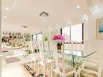 Situada no 17º andar, a unidade oferece uma configuração espacial ampla e versátil. O pavimento inferior e superior distribuem-se em 4 salas distintas, proporcionando ambientes independentes para convívio social, jantar e home office. A área íntima conta com 3 dormitórios, sendo uma suíte, complementados por 3 banheiros e um lavabo. No pavimento superior temos uma piscina coberta e aquecida, com espaço gourmet. O imóvel é entregue semimobiliado, facilitando a transição para o novo proprietário ou a adaptação para projetos de modernização.