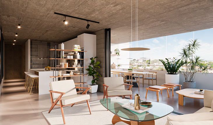 O apartamento possui uma área privativa de 51,00 m², distribuída em uma planta funcional e otimizada. A tipologia compreende 2 dormitórios, sendo 1 suíte, além de um banheiro social completo. A área social é composta por uma sala de estar integrada a uma cozinha em conceito americano, favorecendo a amplitude e a iluminação natural dos ambientes. O imóvel conta ainda com sistema de água quente e dispõe de 1 vaga de garagem vinculada.